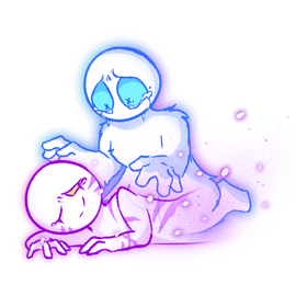 A Khedama with markings is typically a Khedama that has been injured, whether physically or mentally. In these areas the fur is thinner, allowing their inner light to shine through. These markings may fade over time or actively persist throughout their life. They may also only appear in situations relating to the markings themselves.